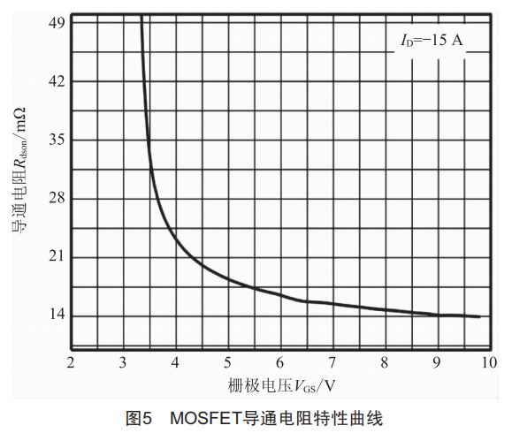 從電路的角度來看,通過改變柵極偏置電壓可以改變通道的導(dǎo)通電阻。以某一器件為例,其導(dǎo)通電阻特性如圖5所示,當(dāng)溝道完全打開時,導(dǎo)通電阻從60mQ減小到14mQ。此外,基板和打線的電阻約為幾毫歐,對低導(dǎo)通電阻器件來說,當(dāng)通道完全打開時,基板和鍵合線可以從通道共享部分加熱功率,從而降低芯片的發(fā)熱量和熱阻。