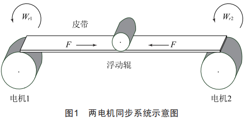 對(duì)于兩電機(jī)同步系統(tǒng),其速度與張力示意模型如圖1所示。