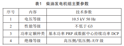 由于柴油發(fā)電機組的操作性較高,所以在地下洞式數(shù)據(jù)中心的設(shè)計中將柴油發(fā)電機組作為應(yīng)急電源,同時根據(jù)規(guī)范要求,柴油發(fā)電機系統(tǒng)應(yīng)該按照N+1的架構(gòu)進(jìn)行冗余配置。地下洞式數(shù)據(jù)中心柴油發(fā)電機組主要技術(shù)參數(shù)的選擇可按照表1進(jìn)行。