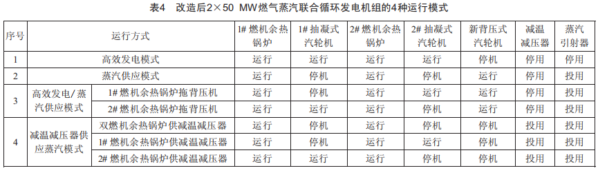 3.2改造后燃?xì)庹羝?lián)合循環(huán)發(fā)電機(jī)組的4種運(yùn)行模式改造后的新2×50MW燃?xì)庹羝?lián)合循環(huán)發(fā)電機(jī)