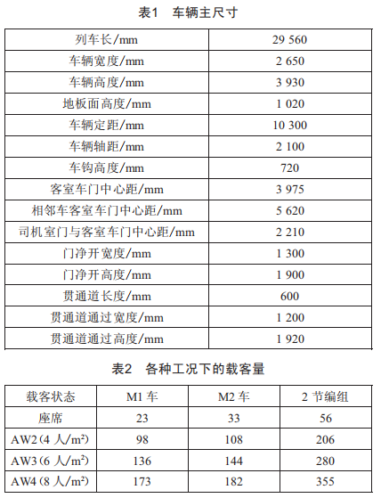 車輛的主要設計尺寸如表1所示。