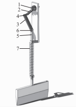 1一原動(dòng)件:3一曲柄:3一連桿:4一銷(xiāo):5一刀桿:6一銷(xiāo):7一彈簧。