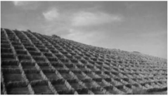 (2)固水保濕:草方格沙障可以吸收保留雨水,減緩沙土中水分蒸發(fā)的速度。據(jù)測(cè)量,在流動(dòng)的沙丘上種設(shè)草方格以后,沙層2m以內(nèi)的濕度可上升2%~3%,沙土含水量有明顯的改善,在草方格里栽種的各種固沙的植物,成活率較以前傳統(tǒng)的種植方法有了極大的提高。