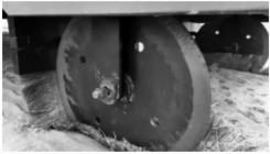 為保證插入地里的稻草的穩(wěn)定性,在機(jī)械尾端設(shè)置了攏沙輪(圖10),以保證插草的高質(zhì)量。