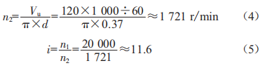 在方程式賽車電路中,最大驅(qū)動(dòng)速度約為l20ks/h,電動(dòng)馬達(dá)的最大轉(zhuǎn)速為20000r/sil,輪胎直徑為0.37s,計(jì)算得出車輪轉(zhuǎn)速(n2)約為1721r/sil,齒輪比(i)為11.6。