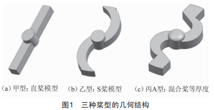 選取不同獎葉模型進(jìn)行對比計算,如圖1所示,簡化設(shè)備局部結(jié)構(gòu),可以得到計算域的完整模型。