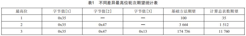 在實(shí)際驗(yàn)證過程中,通過算法得到的電能表總數(shù)可以很好地幫助節(jié)省不同層級(jí)搜表所需要的時(shí)間,這在提高整體效率上做出了巨大貢獻(xiàn)。但是,這種提升在一定程度上取決于被搜表的表地址,所有表的表地址中有差異的最高地址位的字節(jié)值越接近下限0x00,則提高效率的效果越好。但是當(dāng)有差異的最高地址位增加時(shí),由于不同輪次減少的時(shí)間是相互乘加的,這樣總體節(jié)約的輪次就顯得很可觀。整體期望值如表1所示。