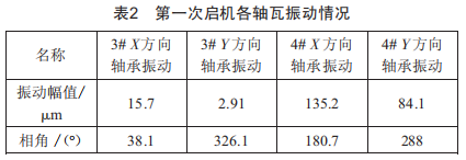 其中,2#X/Y軸振在機組啟動過程中均存在較高現(xiàn)象,曾兩次因振動值過高而跳機:定速3000r/min后振動值稍穩(wěn),但帶負荷后該處軸振值呈周期性波動。