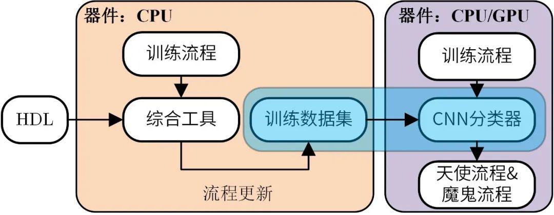最后,通過對預測置信度(即屬于某個類別的概率)進行排序來生成“天使流”與“魔鬼流”。整個架構(gòu)的具體流程如圖2所示。Wu等人[40]提出了一種基于混合圖神經(jīng)網(wǎng)絡的優(yōu)化方法,針對邏輯綜合的流程進行優(yōu)化,以提升結(jié)果質(zhì)量的評估以及優(yōu)化方法的泛化能力。其關(guān)鍵思想在于同時利用來自硬件設計和邏輯綜合流程的時空信息來預測不同設計上各種不同綜合流程的性能指標,最終的實驗結(jié)果也表明利用混合圖神經(jīng)網(wǎng)絡的優(yōu)化方法在誤差精度是現(xiàn)有方法的7~15倍。