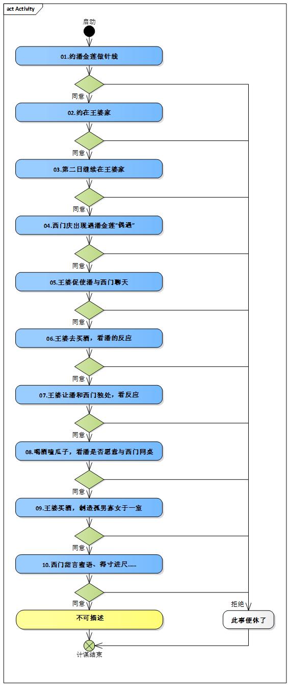 可行性呢?就是這些需求分析下來,能不能讓王婆撮合這對J夫Y婦干出不可描述的事。其實(shí)上面的分析已經(jīng)分析出來了,一個(gè)水性楊花,一個(gè)好色,一個(gè)擅長撮合,都是鄰里街坊。你說,可行么?