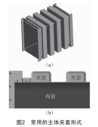 其次,作為壓力容器,為滿足強(qiáng)度要求,滅菌器主體加強(qiáng)筋結(jié)構(gòu)要求比較高、結(jié)構(gòu)尺寸較大,因而占用空間也很大。目前的結(jié)構(gòu)形式是直接由加強(qiáng)筋結(jié)構(gòu)組成夾套,這樣勢必造成夾套容積的放大。在實(shí)際滅菌器使用中,夾套只起到輔助作用,其過大的空間無任何實(shí)際作用,反而造成極大的能源浪費(fèi)。同時(shí),由于加強(qiáng)筋內(nèi)部承壓,加強(qiáng)筋結(jié)構(gòu)要額外滿足承壓殼體的要求,因而夾套結(jié)構(gòu)也相對復(fù)雜、加工難度較高,使用中故障風(fēng)險(xiǎn)也較高。