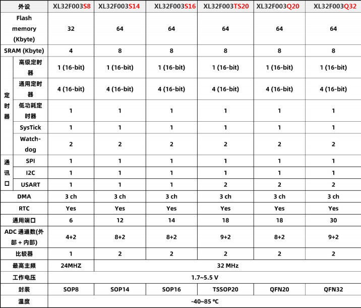 32位M0核單片機(jī) XL32F003 系列,多種不同封裝類型多款產(chǎn)品
