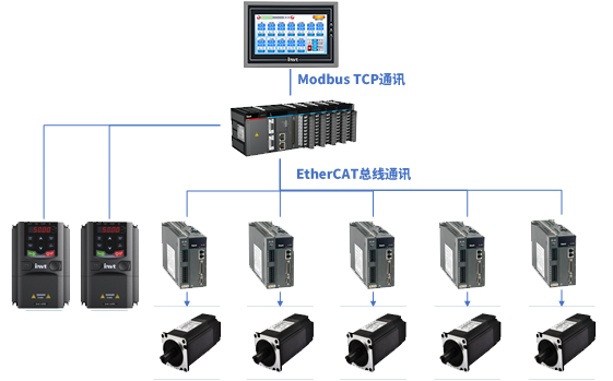 根據(jù)客戶需求,英威騰為其推出VS系列HMI+AX71中型PLC+DA200高性能伺服+GD20變頻器的整體解決方案,其中,AX71控制器采用EtherCAT總線通訊,支持電子凸輪等高階運(yùn)動(dòng)控制;DA200采用絕對(duì)值電機(jī),位置精準(zhǔn)可靠。該方案整體架構(gòu)簡(jiǎn)潔、性能優(yōu)秀、易于安裝和維護(hù),降本增效效果顯著。