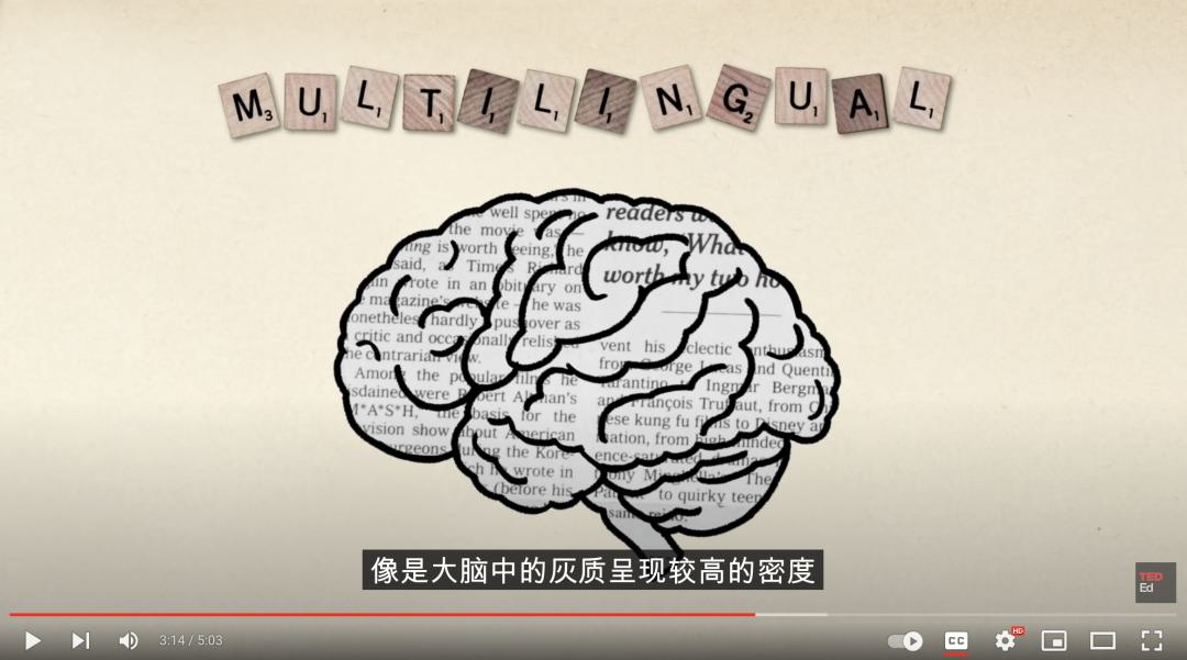 她比較了兩類人的大腦,一類是會(huì)多種語言的人,而另一類是只會(huì)一種語言的人。