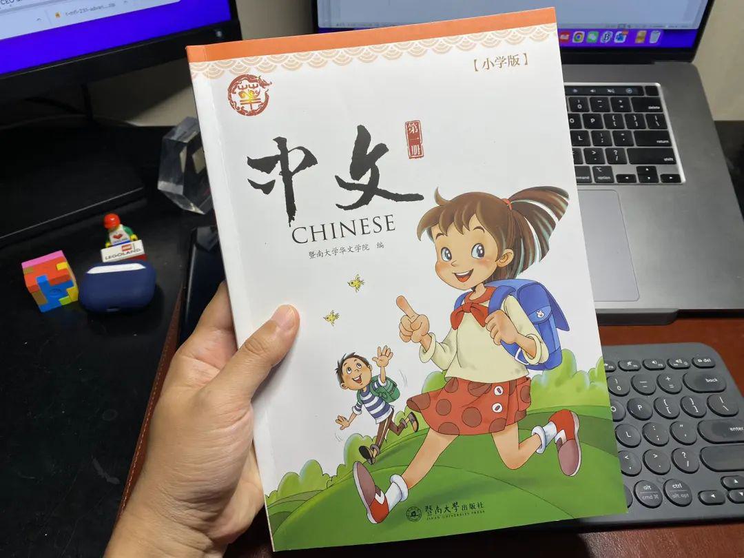 前幾天,妹妹學(xué)校發(fā)了外語教材,只不過對她們學(xué)校來說,英語是母語,而外語是中文,每天都學(xué)。