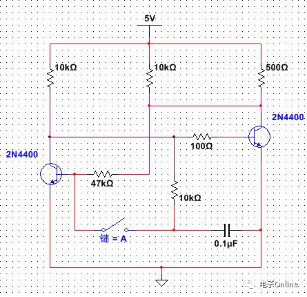 經(jīng)過了三極管的初步講解之后,再對一個(gè)常見的震蕩電路以及自鎖電路進(jìn)行電路分析。電路圖如下所示: