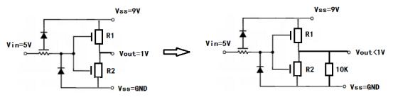 其實(shí)上拉和下拉電阻的取值涉及到元器件的驅(qū)動(dòng)電流問題?,F(xiàn)在根據(jù)昨天推文中“反相器的輸出低電平不夠低”作為例子,解釋下拉電阻的取值方法。