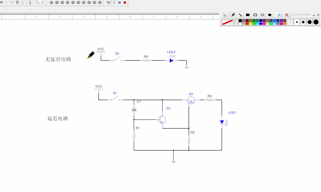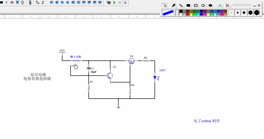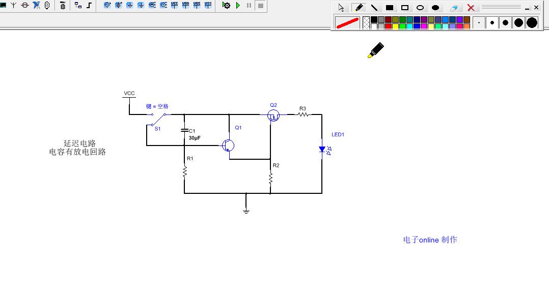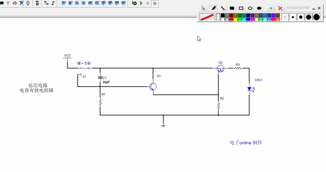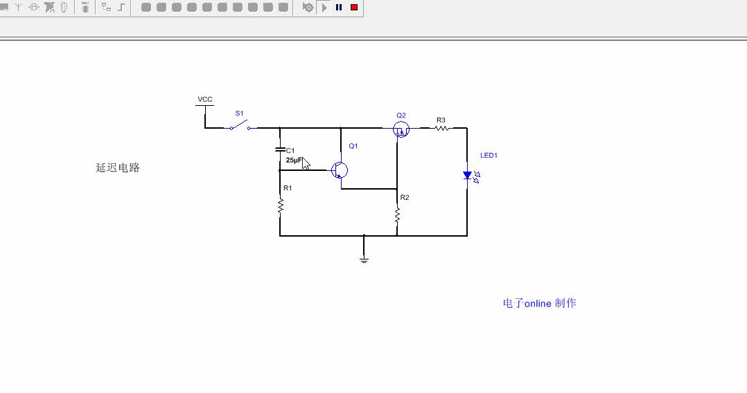 二、為了保證延時(shí)時(shí)間穩(wěn)定,必須要給電容C1加上放電回路,否則延時(shí)電路在第二次上電時(shí)會(huì)失去延時(shí)效果。仿真如下所示: