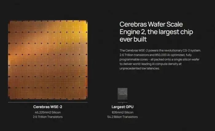 今年,Cerebras宣布推出Wafer Scale Engine 2,擁有2.6萬(wàn)億個(gè)晶體管以及85000個(gè)AI優(yōu)化的內(nèi)核。同時(shí)它也是面積最大的芯片,面積為46255平方毫米,簡(jiǎn)單粗暴的將一整個(gè)300mm硅片直接做成了一顆芯片!
