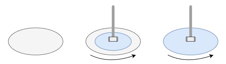 光刻是整個制造中最核心的一步。光刻前要在晶圓上均勻的涂上光刻膠(photoresist),通常光刻膠采用旋涂的方式,即邊旋轉(zhuǎn),邊涂抹,保證光刻膠的均勻性,如下圖所示。