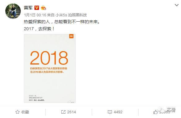 今天小編好奇打開(kāi)雷軍微博,看到一條雷軍2017年初的置頂微博:熱愛(ài)探索的人,總能看到不一樣的未來(lái) 2017去探索。