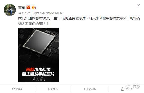 小米松果處理器馬上發(fā)布 雷軍微博炸了