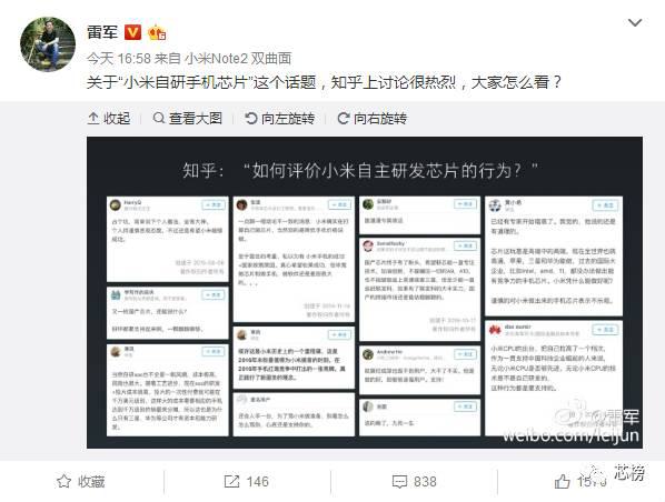 知乎:如何評(píng)價(jià)小米自主研發(fā)芯片的行為?雷軍倒是收集了挺多觀點(diǎn),褒貶不一,有興趣的可以到雷總的微博下去看看大家的留言評(píng)論。