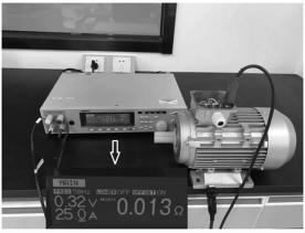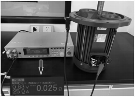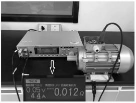 按照《中小型旋轉(zhuǎn)電機(jī)通用安全要求》(GB/T14711一2013)標(biāo)準(zhǔn)9.11條關(guān)于接地電阻試驗(yàn)的規(guī)定,通過在預(yù)計(jì)接地的部件(易觸及的電動(dòng)機(jī)金屬外殼部件)與接地導(dǎo)體端子(接地裝置)之間施加一個(gè)等于電機(jī)全定額輸入或輸出時(shí)的電流,測(cè)量電壓降并以此電壓降除以流過該線路中的電流,計(jì)算出接地路徑電阻。接地路徑的電阻應(yīng)不大于0.1Ω。
