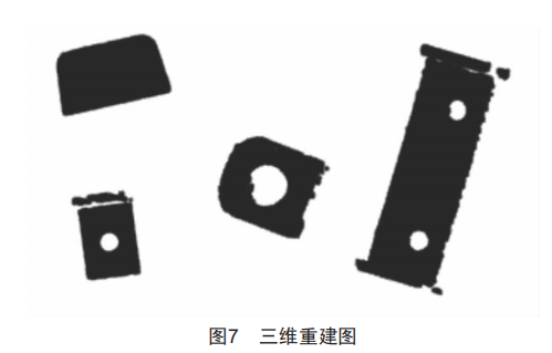 根據(jù)捕捉到的圖像分別進(jìn)行包裹相位的計算,完成相位校正和極線校正,通過相位匹配計算得到異構(gòu)件的視差圖,最后結(jié)合雙目系統(tǒng)求解得到異構(gòu)件的三維點云,完成三維重建,如圖7所示。