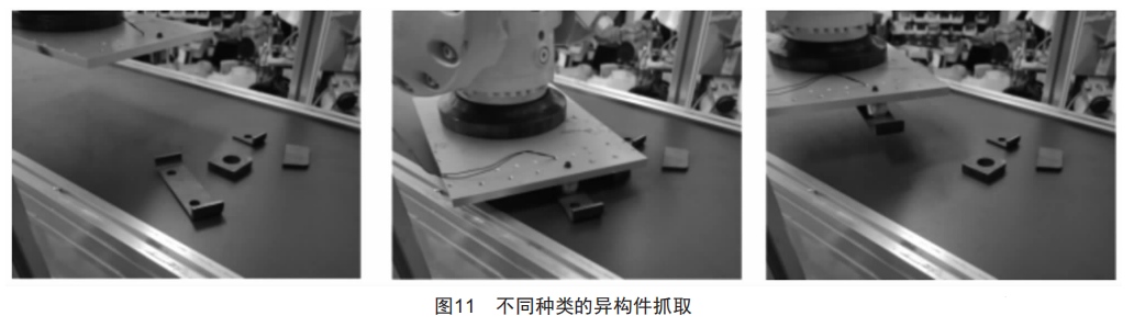 根據(jù)配準(zhǔn)結(jié)果獲取抓取位姿后,控制機器人完成抓取。多種類異構(gòu)件的抓取示意圖如圖11所示。