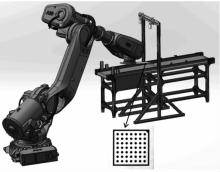 近年來,視覺引導(dǎo)工業(yè)機器人作業(yè)成為學(xué)者研究的熱點,尤其是在機器人抓取、安裝等方面應(yīng)用廣泛,其原理是經(jīng)視覺技術(shù)進(jìn)行三維重建后,實現(xiàn)對物體的位姿識別和定位。精確的位姿識別能有效提高機器人抓取準(zhǔn)確性,而目前的三維測量精度和速度仍處于探索研究的過程中。一般位姿主要包括旋轉(zhuǎn)和平移兩種狀態(tài),目前常用的位姿計算方法主要有深度學(xué)習(xí)和點云配準(zhǔn)等。其中,深度學(xué)習(xí)依賴大量樣本且訓(xùn)練耗時太長,難以推廣應(yīng)用。點云配準(zhǔn)是基于模板點云與目標(biāo)點云之間的相似特征點,求出旋轉(zhuǎn)平移矩陣,將兩個點云轉(zhuǎn)換到同一個坐標(biāo)系下,得到匹配參數(shù)后利用手眼標(biāo)定參數(shù)計算出機械手抓取位姿,能夠大幅縮短運行時間,提高配準(zhǔn)精度。本系統(tǒng)采用雙目加投影儀的視覺檢測方法,通過處理獲取三維點云數(shù)據(jù),得到物體位姿信息,最后引導(dǎo)機械手對目標(biāo)物體進(jìn)行抓取,提高匹配與抓取精度。