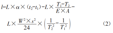 公式(2)分為三部分,其中L×a×(12-11)為僅考慮線材本身的材質(zhì)特性及溫度變化的伸長(zhǎng)量,