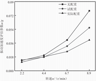 圖8配重前后不同工況下的振動加速度評估參數(shù)