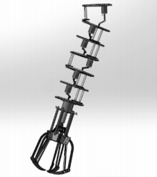 本文介紹了一種氣動(dòng)仿生柔性機(jī)械臂的設(shè)計(jì),主體機(jī)械臂結(jié)構(gòu)采用多關(guān)節(jié)構(gòu)造,不同關(guān)節(jié)間采用不同方向的較鏈布局,以此實(shí)現(xiàn)機(jī)械臂在不同方向的彎曲運(yùn)動(dòng):多關(guān)節(jié)間的協(xié)調(diào)變形可以實(shí)現(xiàn)機(jī)械臂的伸縮運(yùn)動(dòng)。驅(qū)動(dòng)部分采用電磁閥控制的氣缸,利用氣體的可壓縮性實(shí)現(xiàn)部分柔性。機(jī)械臂末端安裝氣動(dòng)機(jī)械手爪,從而使其能夠?qū)崿F(xiàn)物體的安全抓取。本設(shè)計(jì)雖然能夠?qū)崿F(xiàn)預(yù)期運(yùn)動(dòng),但設(shè)計(jì)精度及自動(dòng)化程度不高,下一步研究將集中在這兩個(gè)方面。