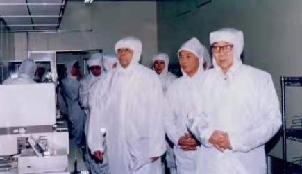 (朱貽瑋陪同劉劍鋒副部長視察凈化車間)