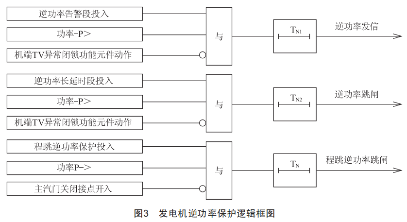本裝置逆功率保護(hù)設(shè)有1段2時(shí)限,短延時(shí)發(fā)信,長延時(shí)跳閘[1],邏輯圖如圖3所示。