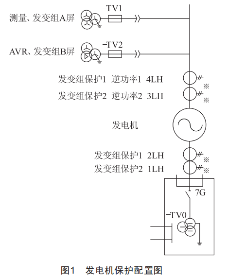 某電廠2號(hào)發(fā)電機(jī)組有功功率為200MW,機(jī)端額定電壓為15.75kV,發(fā)變組保護(hù)雙重化配置發(fā)電機(jī)采用北京四方繼保自動(dòng)化股份有限公司的CSC-306D微機(jī)型發(fā)變組保護(hù)裝置,變壓器保護(hù)用北京四方繼保自動(dòng)化股份有限公司的CSC3-16M變壓器保護(hù),配置單套CSC336變壓器非電量保護(hù)。發(fā)電機(jī)逆功率保護(hù)是作為汽輪機(jī)突然停機(jī),發(fā)電機(jī)變?yōu)殡妱?dòng)機(jī)運(yùn)行,為防止汽輪機(jī)葉片過熱而導(dǎo)致葉片損壞的保護(hù)。逆功率保護(hù)A、B柜采樣CT均取自發(fā)電機(jī)端獨(dú)立的兩組電流互感器,采樣PT取自發(fā)電機(jī)端獨(dú)立的兩組電壓互感器,如圖1所示。