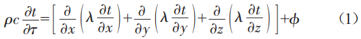 式中:β為物體的密度(kg/m3):c為物體的比熱容:小為物體的內熱源強度。
