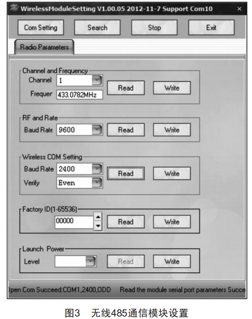 無線485通信模塊可以通過串口與上位機連接進行參數(shù)設置,其設置界面如圖3所示。