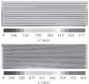 圖4錯(cuò)列、順列換熱器X方向截面速度云圖