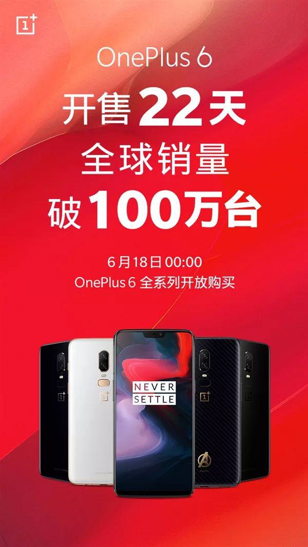 6月15日,一加官方微博發(fā)布消息,表示一加6的全球銷量已經(jīng)突破100萬(wàn)臺(tái),而且這個(gè)銷量?jī)H使用了22天,這是一加手機(jī)新的紀(jì)錄,是一加手機(jī)的里程碑。