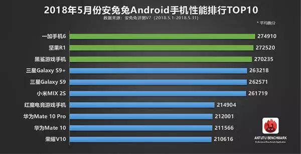 近日,安兔兔公布的5月份Android手機(jī)性能排行榜單顯示,跑分成績(jī)最高的設(shè)備正是一加手機(jī)6。目前該機(jī)的安兔兔平均跑分成績(jī)?yōu)?74910分,暫居排行榜第一位。對(duì)于只出精品旗艦的一加,每代旗艦一上市,必然會(huì)殺入性能排行榜前列。
