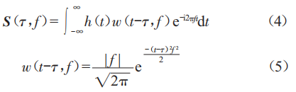 式中:S(T,f)為分解后所得的時頻矩陣:h(t)為被分析信號:w(t_T,f)為高斯窗函數(shù):T為平移因子,控制高斯窗函數(shù)在時軸上的位置:f為頻率:i為虛數(shù)單位。
