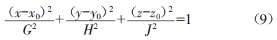 式中:[XoY0:0]為橢球形球心坐標(biāo):G、H、J分別為沿X軸、y軸的赤道半徑及極半徑。