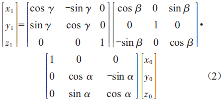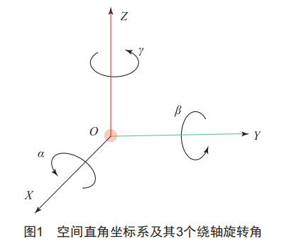 首先對空間建立空間直角坐標(biāo)系并定義其繞3個坐標(biāo)軸旋轉(zhuǎn)的方向角分別為a、8、y,如圖1所示。