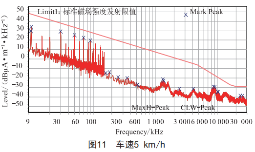接下來進行車速20km/h的測試,測試頻段3~30MHz,測試結(jié)果如圖13所示。