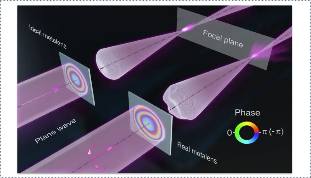 超構(gòu)透鏡的工作原理是調(diào)控光波的相位分布,從而實(shí)現(xiàn)對光波波前的操縱。