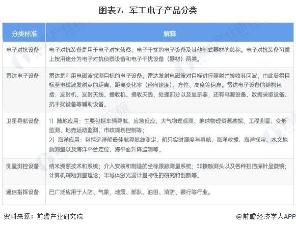 1、軍工電子產(chǎn)品分類軍工電子產(chǎn)品應(yīng)用主要包括電子對抗設(shè)備、雷達電子設(shè)備、衛(wèi)星導(dǎo)航設(shè)備、測量測控設(shè)備和通信指揮設(shè)備等。