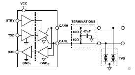 浪涌保護(hù)不再難 適于ADM3055E、ADM3057E CAN FD收發(fā)器的5種方案請(qǐng)查收
