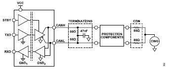 圖2.適用于CAN FD收發(fā)器的浪涌耦合網(wǎng)絡(luò)